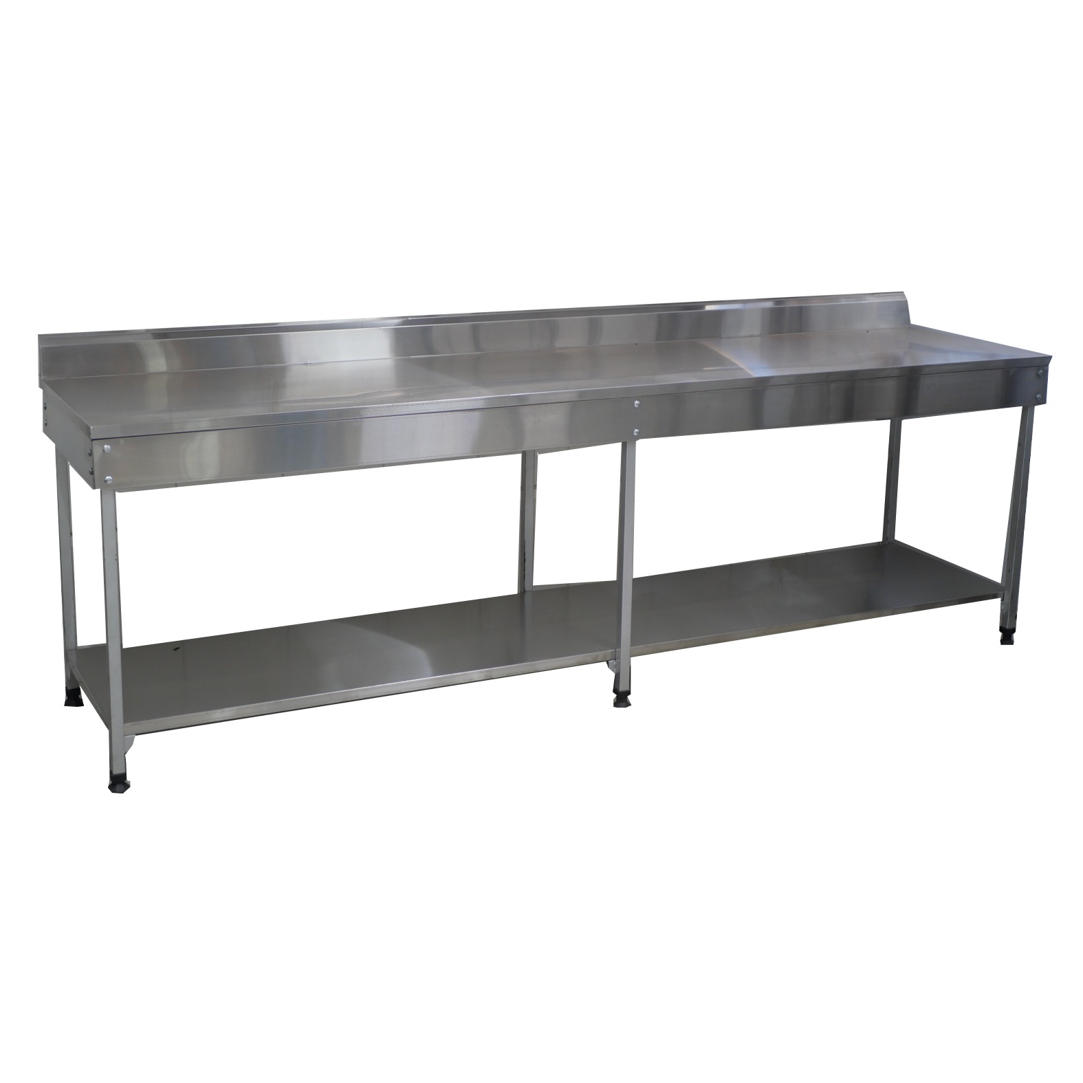 Mesa de encosto com prateleira em Inox